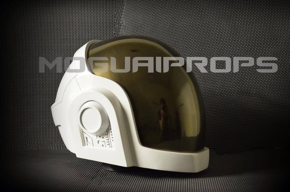 * This helmet is one size fits most,it can fit up to a 7 3/4hat size head. Urethane plastic was used to build this item You can see out through the gold visor. * Finish on this helmet it's white protected by acrylic urethane coat (similar to the industrial clear coat on your car) *Padding on the inside for comfortable wear. This is a fan-made replica, not for resale and not associated with or Daft Punk themselves. I am not selling this as a direct copy of GUY Manuel helmet it is a fan created tribute piece. This helmet is being sold on an AS IS basis.